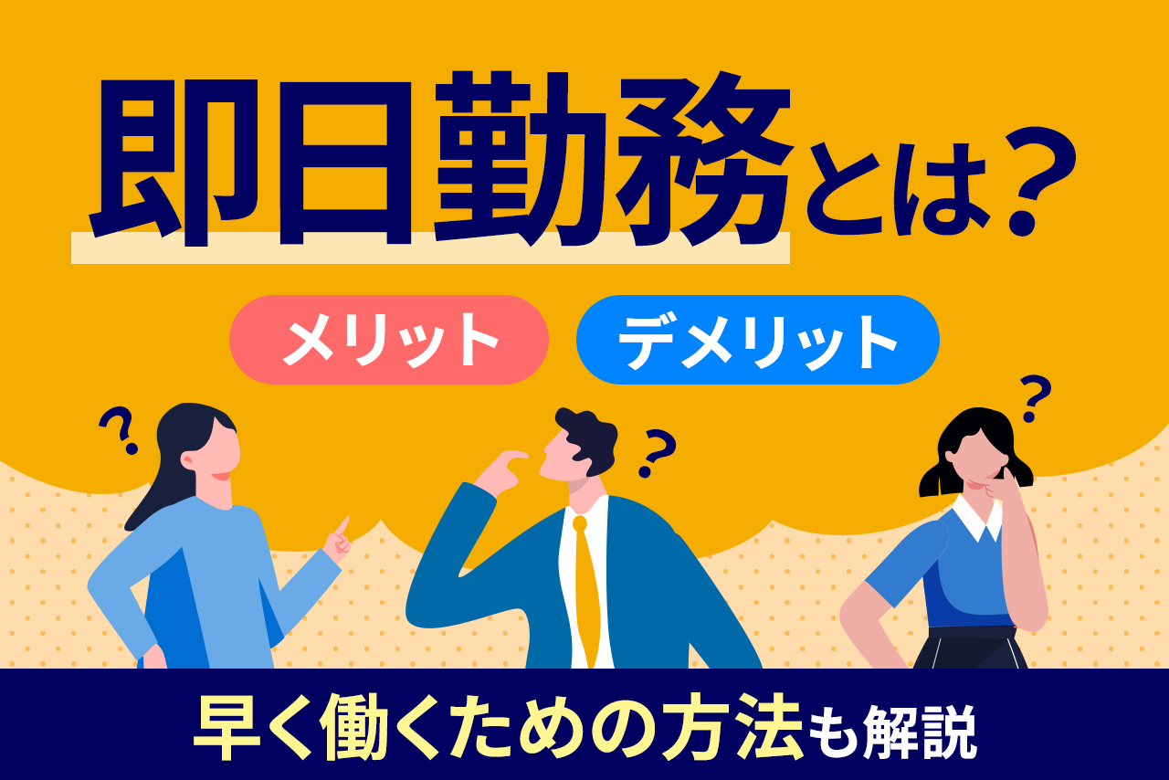 求人情報の「即日勤務」という文言を見て、「即日勤務ってなに?」「すぐに働かないといけないの?」と疑問に思ったことはありませんか。即日勤務の意味がよくわからなくて応募に踏み切れないという方もいるでしょう。